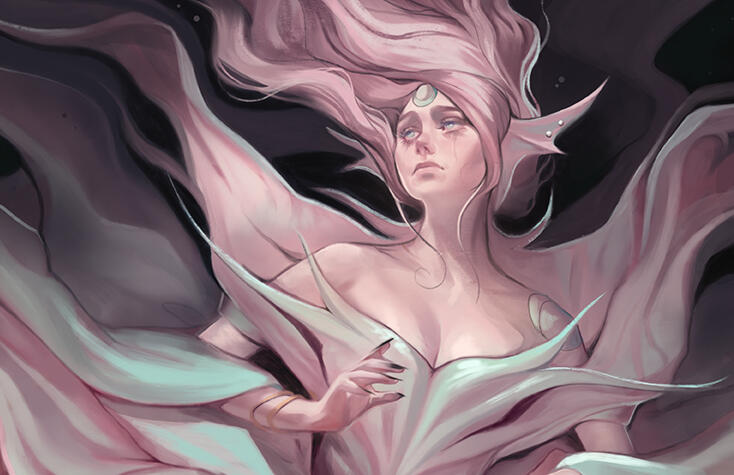 Huge bat-like wings spread above, wrapping you in deep, endless shadows. Her dark, unreadable eyes watch you, yet hidden within them is something gentle. Something almost... kind. The sharp curve of her horns says danger, but her outstretched hand tells another story. She waits for you.Will you take her hand?Limited to 100 figurines.